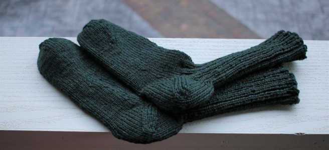 Nick shrunk the first pair by washing and drying them on hot, so now I have a very stout pair of new hiking socks. The second pair I knit longer and taller, but I fear they too will become mine. Which isn’t necessarily a bad thing…